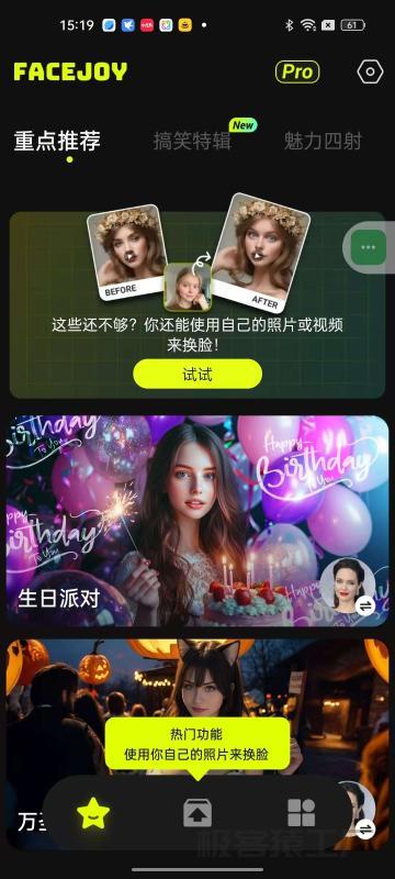 【资 源 介 绍】FaceJoy是一款安卓端AI换脸软件。它运用先进AI技术,能精准提取和替换面部特征,换脸效果逼真。软件界面简洁,操作便捷,内置多种风格换脸模板,还支持实时面部变化、动态人像等功能,让用户尽享娱乐与创意体验。