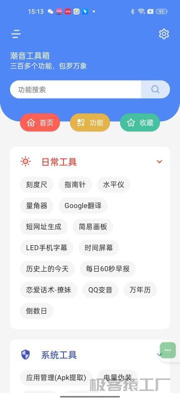 【资 源 介 绍】潮音工具箱是一款功能丰富的手机应用。它集成了尺子、水平仪、指南针等多种实用工具,还涵盖文件管理、多媒体处理、网络优化等功能,界面简洁,操作便捷,能满足用户日常生活、学习和工作中的多样化需求。